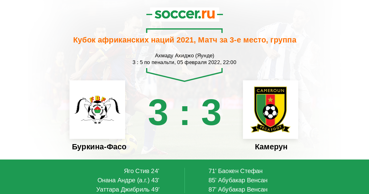 Камерун 6:5 2:2 4:3