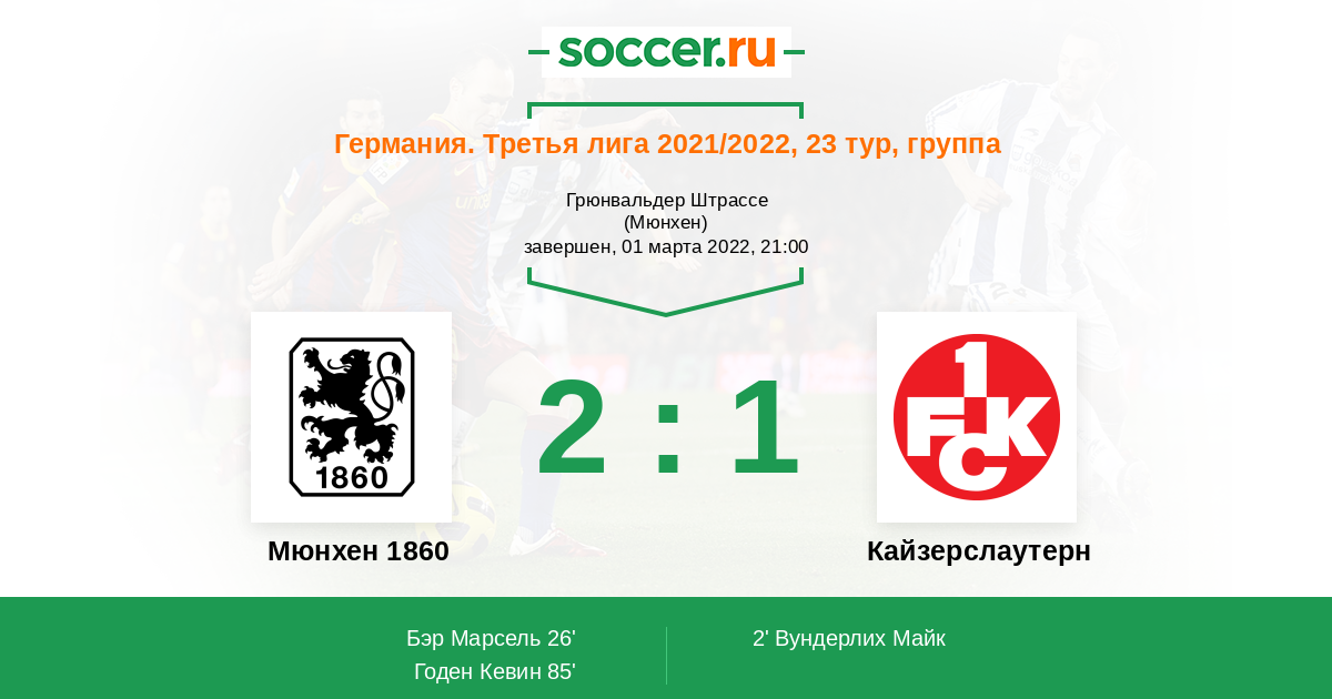 Германия. Третья лига 04.05.2021 Мюнхен 1860 Логотип футбольный клуб Мюнхен 1860 3:0 Логотип футбольный клуб Кайзерслаутерн Кайзерслаутерн