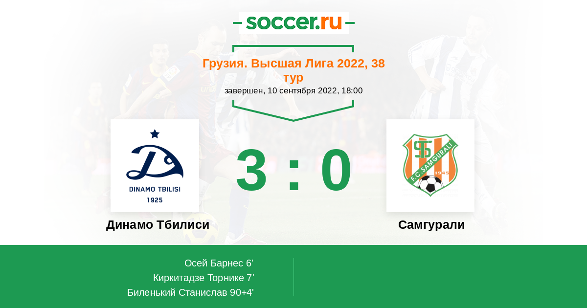 Грузия. Высшая лига 16.06.2022 Самгурали Логотип футбольный клуб Самгурали (Цхалтубо) 2:1 Логотип футбольный клуб Динамо Тбилиси Динамо Тбилиси