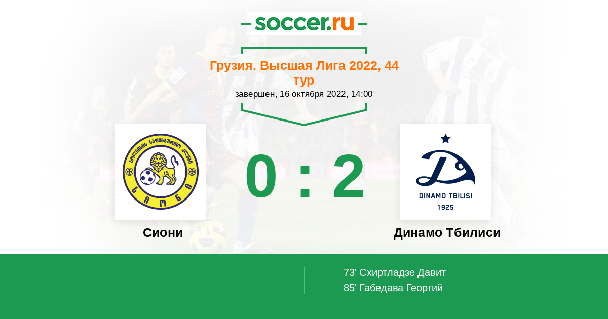 Грузия. Высшая лига 30.09.2012 Динамо Тбилиси Логотип футбольный клуб Динамо Тбилиси 7:2 Логотип футбольный клуб Сиони (Болниси) Сиони