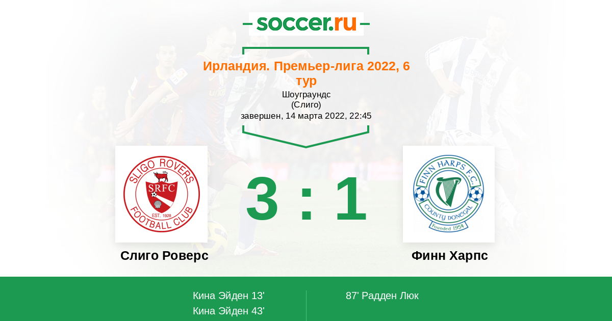 Ирландия. Премьер-лига 18.06.2022 Слиго Роверс Логотип футбольный клуб Слиго Роверс 3:0 Логотип футбольный клуб Финн Харпс (Баллибофи) Финн Харпс