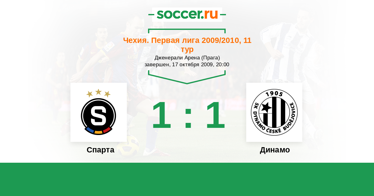 Чехия. Первая Лига 21.10.2007 Динамо Логотип футбольный клуб Динамо (Ческе-Будеевице) 1:1 Логотип футбольный клуб Спарта (Прага) Спарта