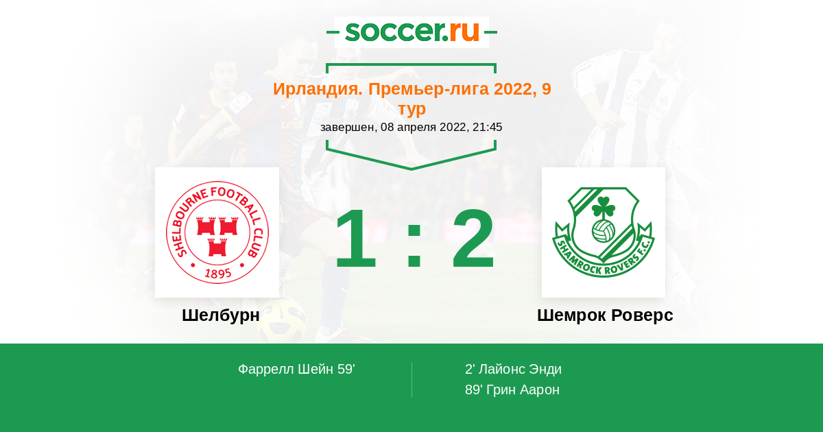 Ирландия. Премьер-лига 09.10.2022 Шемрок Роверс Логотип футбольный клуб Шемрок Роверс (Дублин) 3:2 Логотип футбольный клуб Шелбурн (Драмкондра) Шелбурн