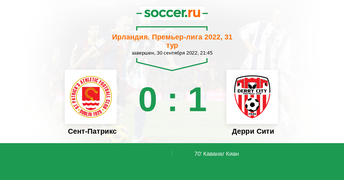 Ирландия. Премьер-лига 18.03.2022 Дерри Сити Логотип футбольный клуб Дерри Сити 2:1 Логотип футбольный клуб Сент-Патрикс (Дублин) Сент-Патрикс