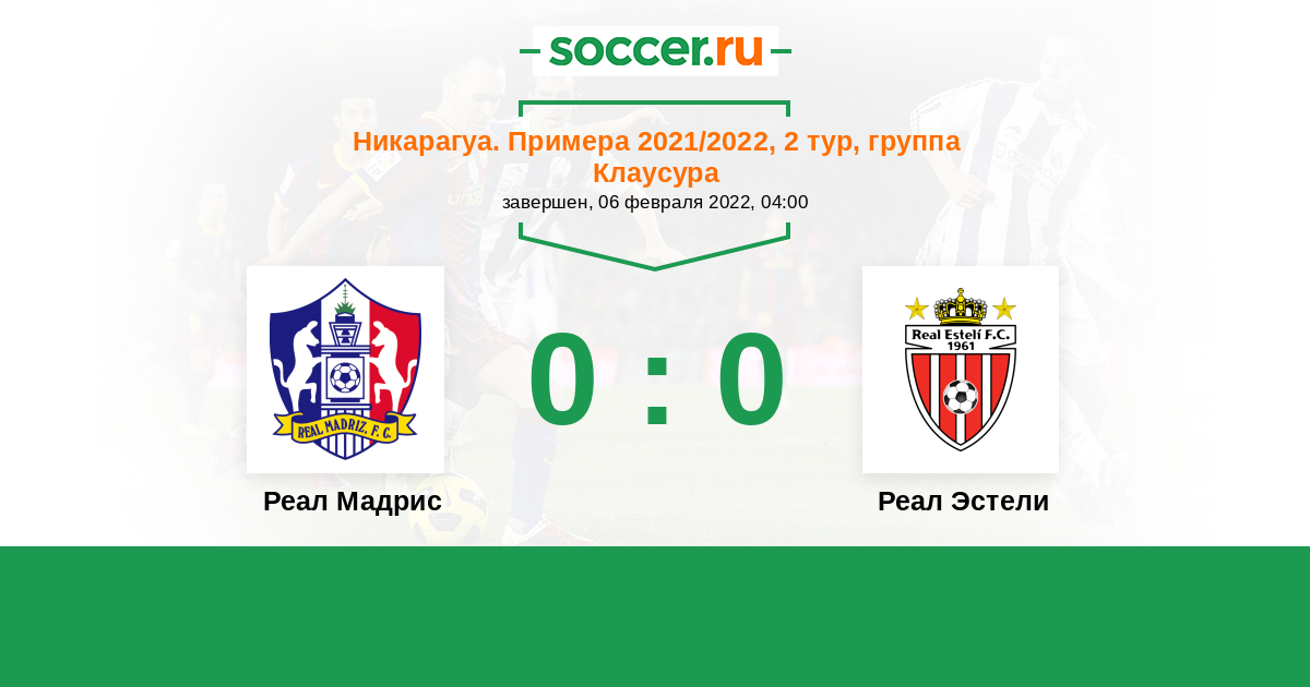 Никарагуа. Примера 20.03.2022 Реал Эстели Логотип футбольный клуб Реал Эстели 4:0 Логотип футбольный клуб Реал Мадрис (Сомото) Реал Мадрис