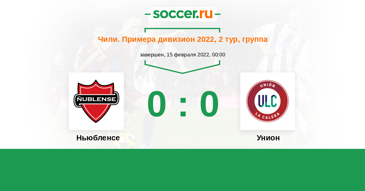 Чили. Примера дивизион 11.07.2022 Унион Логотип футбольный клуб Унион (Ла Калера) 2:2 Логотип футбольный клуб Ньюбленсе (Чильян) Ньюбленсе