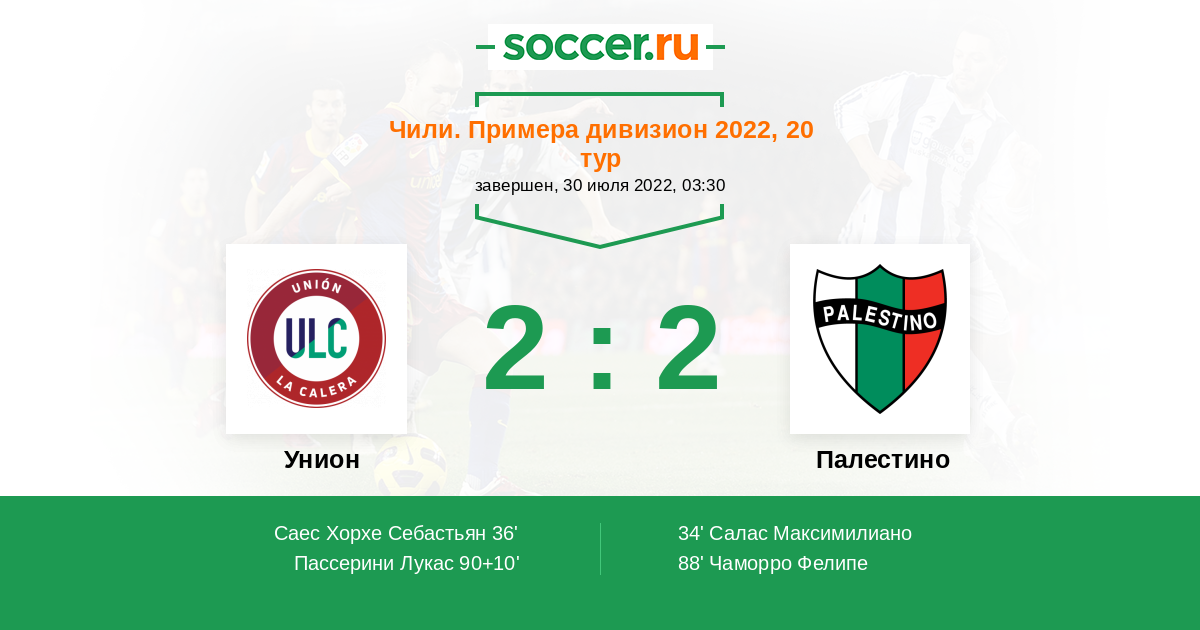 Чили. Примера дивизион 04.11.2021 Палестино Логотип футбольный клуб Палестино (Сантьяго) 1:2 Логотип футбольный клуб Унион (Ла Калера) Унион