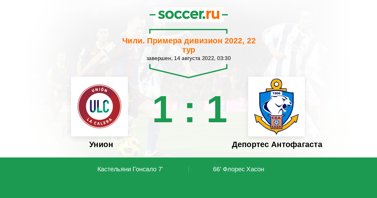 Чили. Примера дивизион 22.03.2022 Депортес Антофагаста Логотип футбольный клуб Депортес Антофагаста 0:0 Логотип футбольный клуб Унион (Ла Калера) Унион