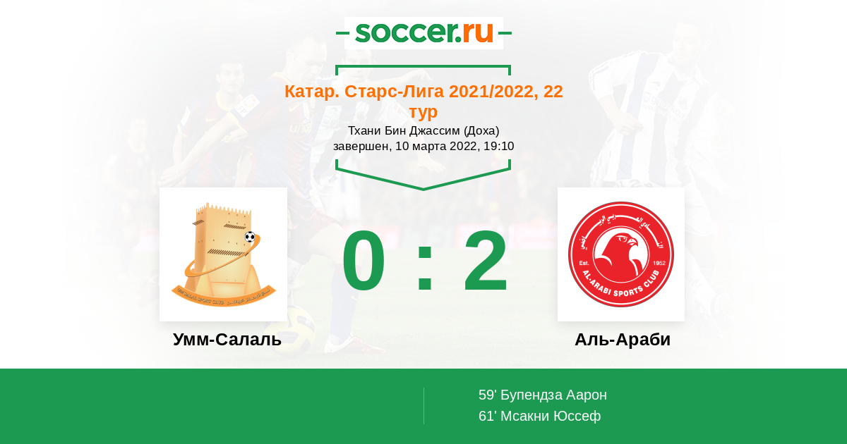 Катар. Старс Лига 11.04.2014 Умм-Салаль Логотип футбольный клуб Умм-Салаль 2:3 Логотип футбольный клуб Аль-Араби (Доха) Аль-Араби