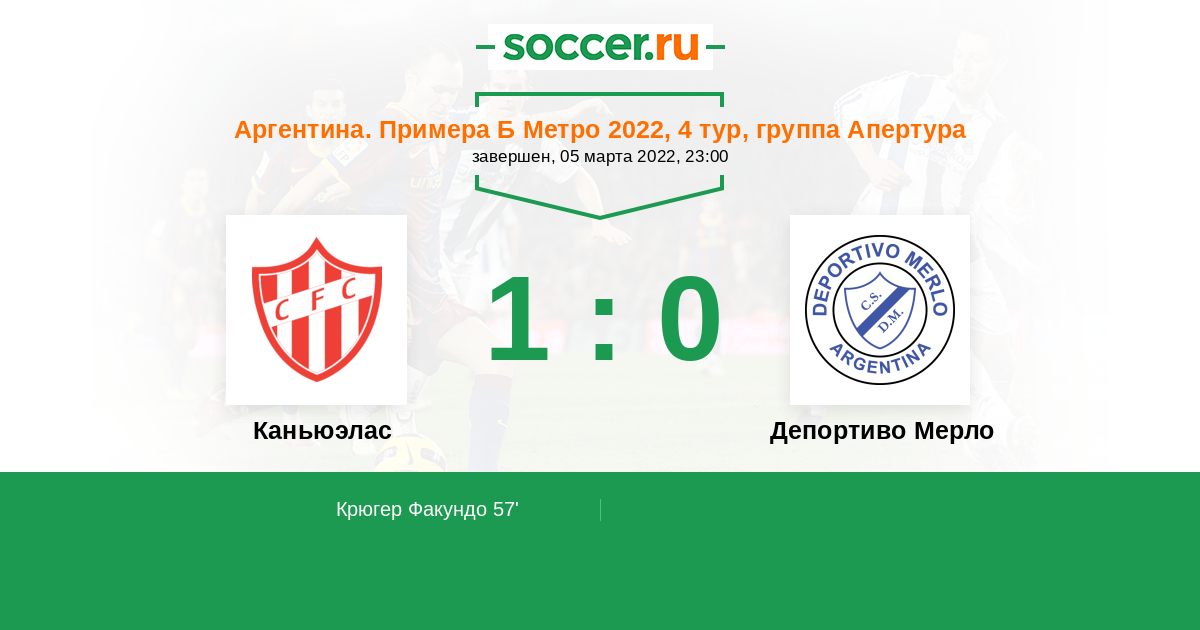 Аргентина. Примера Б Метро 02.07.2022 Депортиво Мерло Логотип футбольный клуб Депортиво Мерло 2:1 Логотип футбольный клуб Каньюэлас Каньюэлас