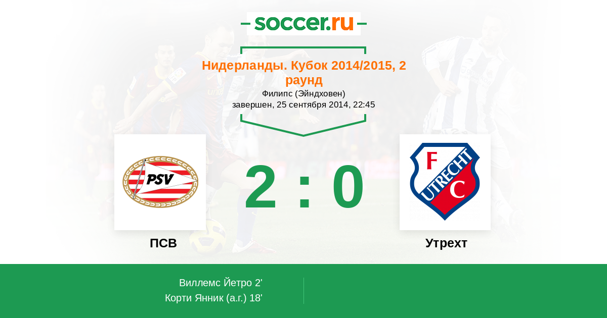 Нидерланды. Кубок 25.09.2014 ПСВ Логотип футбольный клуб ПСВ (Эйндховен) 2:0 Логотип футбольный клуб Утрехт Утрехт