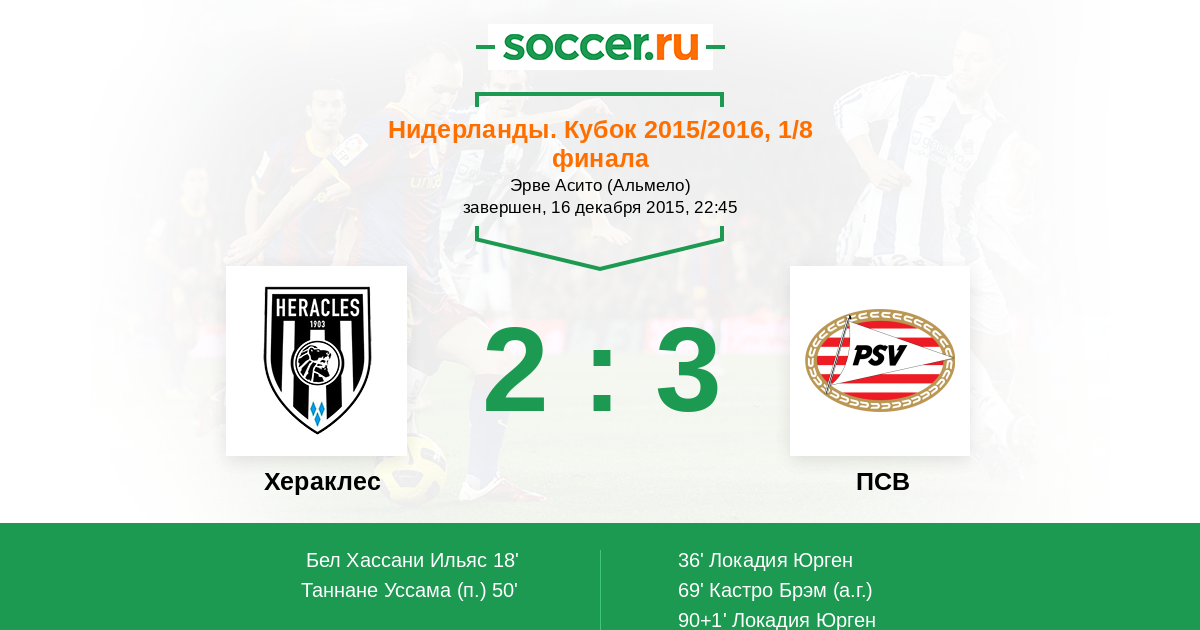Нидерланды. Эредивизи 20.02.2016 ПСВ Логотип футбольный клуб ПСВ (Эйндховен) 2:0 Логотип футбольный клуб Хераклес (Алмело) Хераклес