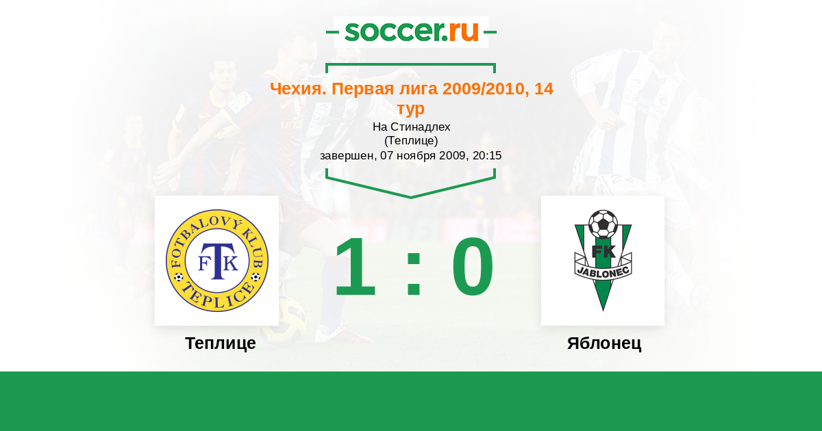 Чехия. Первая Лига 26.04.2009 Теплице Логотип футбольный клуб Теплице 3:0 Логотип футбольный клуб Яблонец (Яблонец-над-Нисоу) Яблонец