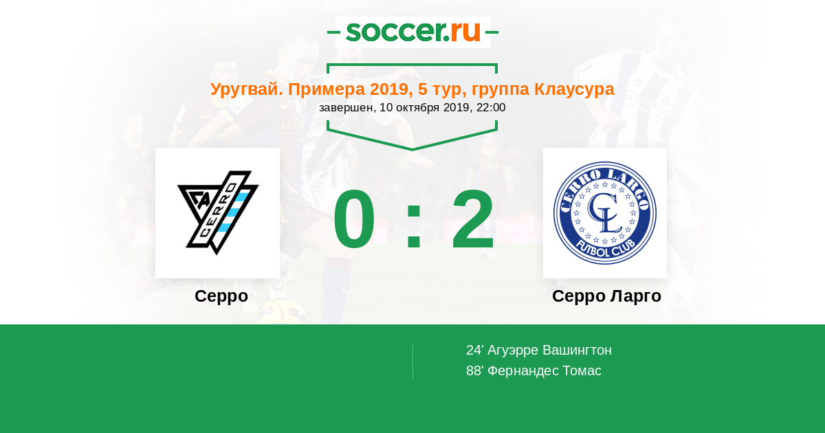 Уругвай. Примера A 08.10.2020 Серро Ларго Логотип футбольный клуб Серро Ларго (Мело) 2:1 Логотип футбольный клуб Серро (Монтевидео) Серро