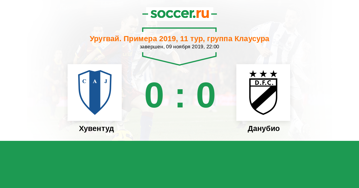 Уругвай. Примера A 09.11.2019 Хувентуд Логотип футбольный клуб Хувентуд (Лас-Пьедрас) 0:0 Логотип футбольный клуб Данубио (Монтевидео) Данубио