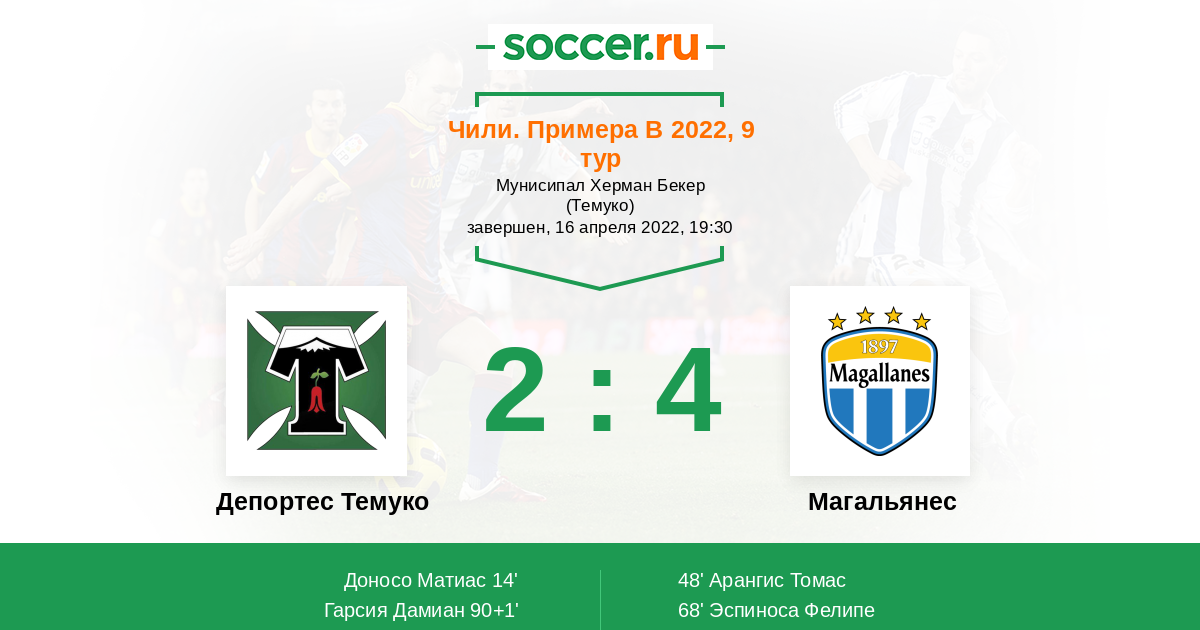 Чили. Примера В 22.03.2014 Магальянес Логотип футбольный клуб Магальянес (Сантьяго) 3:0 Логотип футбольный клуб Депортес Темуко Депортес Темуко