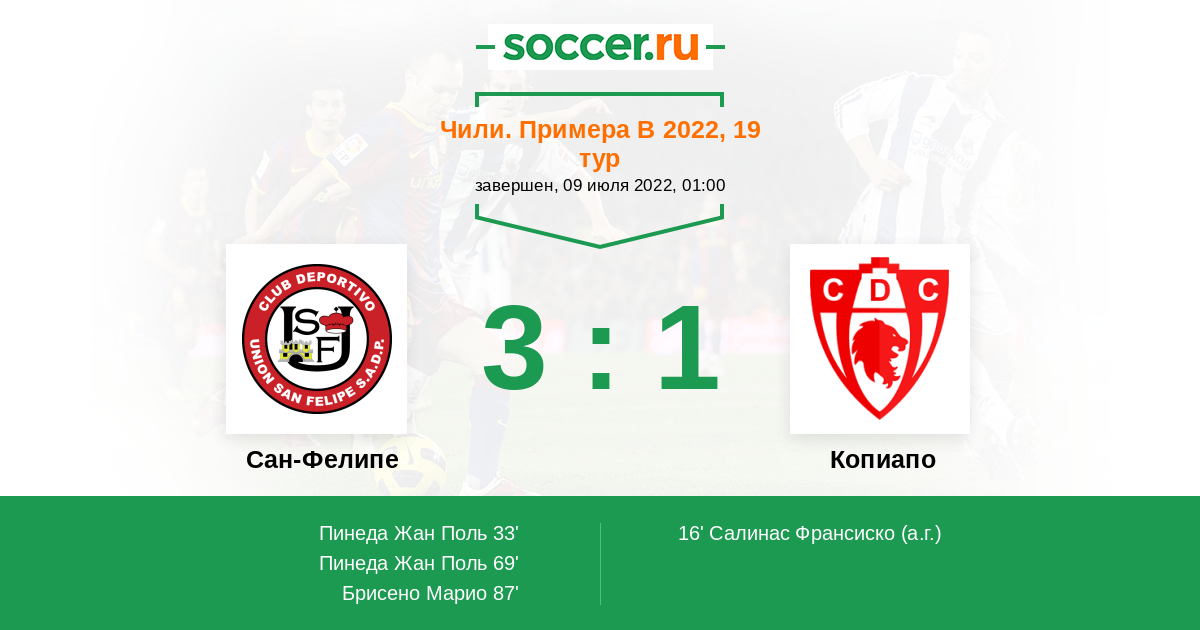 Чили. Примера В 22.07.2021 Копиапо Логотип футбольный клуб Копиапо 1:0 Логотип футбольный клуб Сан-Фелипе (Сан Фелипе) Сан-Фелипе