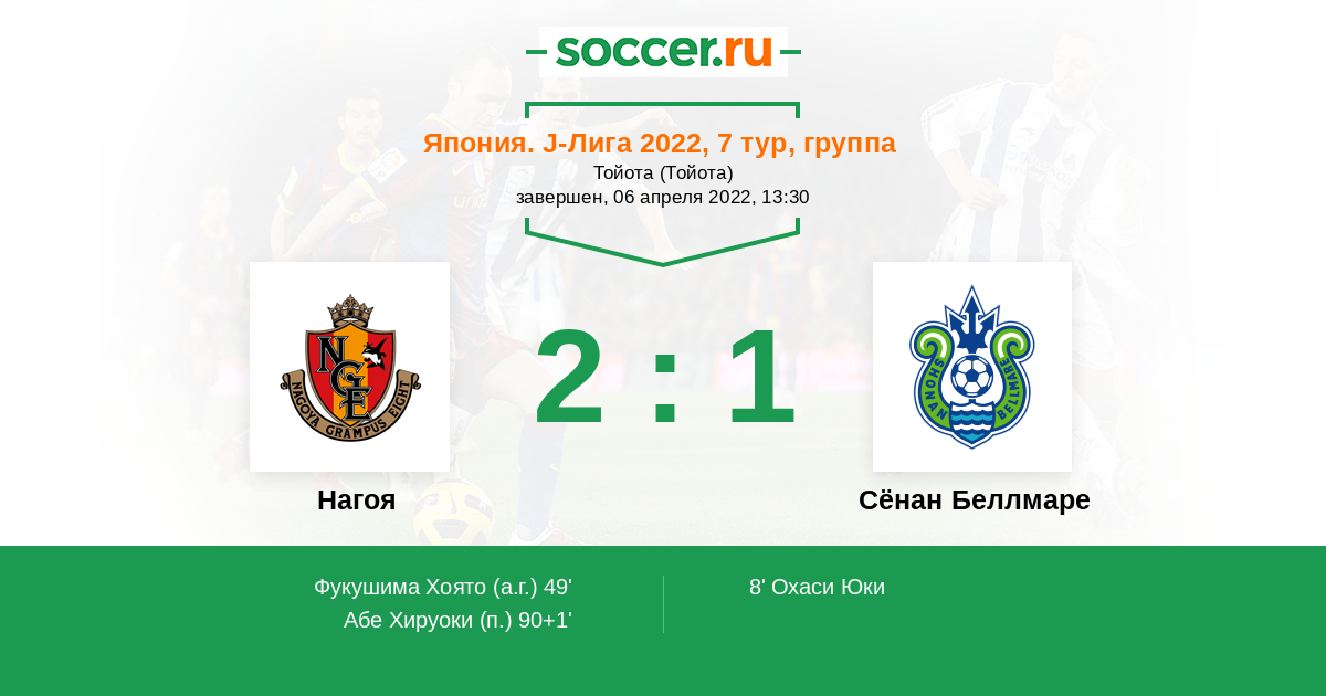 Япония. J-Лига 1 23.04.2023 Нагоя Логотип футбольный клуб Нагоя 2:2 Логотип футбольный клуб Сёнан Беллмаре (Хирацука) Сёнан Беллмаре