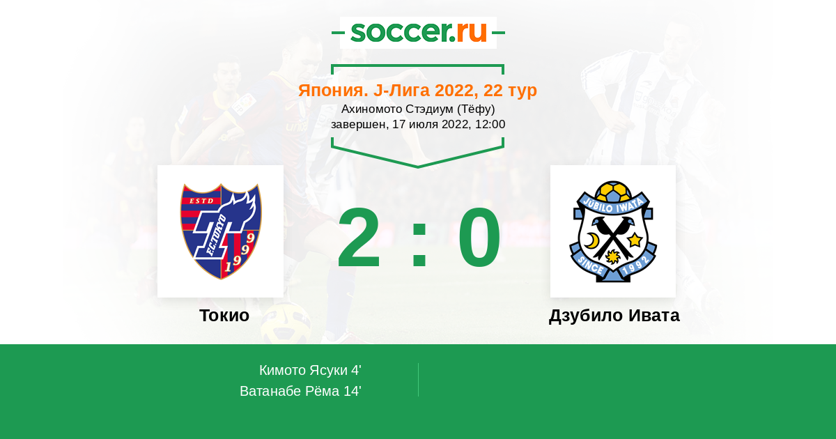 Япония. J-Лига 1 14.05.2022 Дзубило Ивата Логотип футбольный клуб Дзубило Ивата 2:1 Логотип футбольный клуб Токио Токио