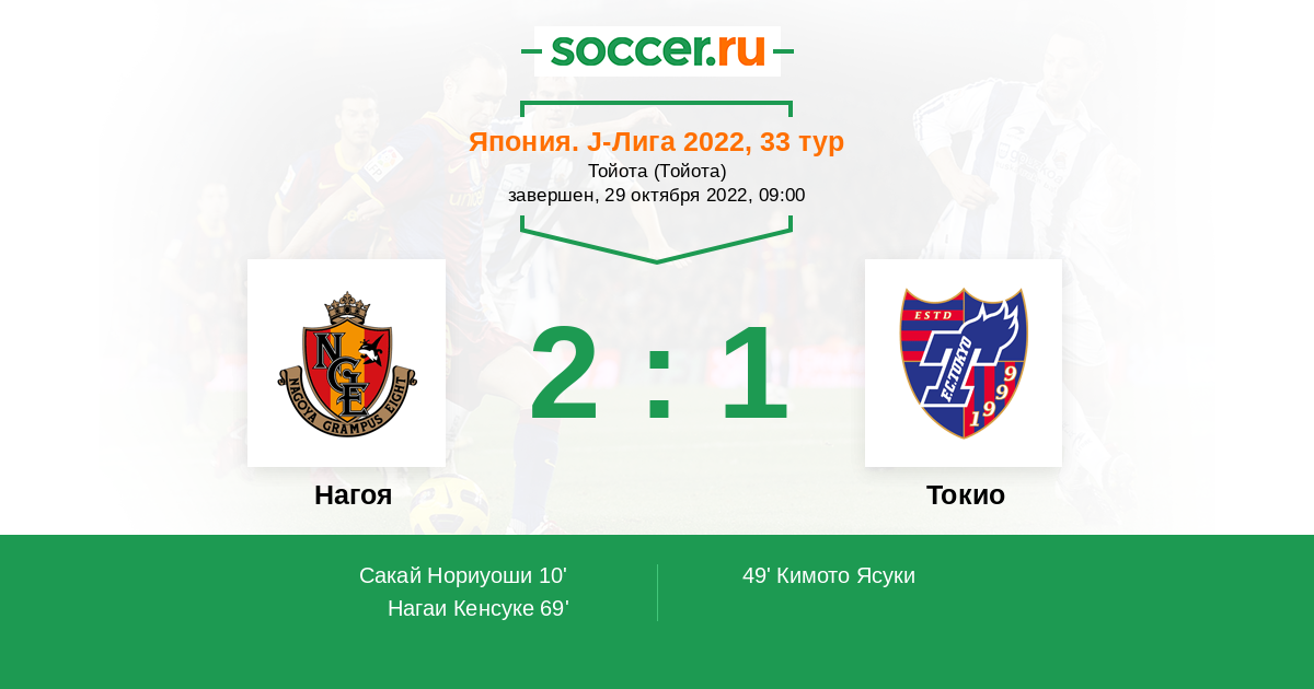 Япония. J-Лига 1 07.10.2018 Нагоя Логотип футбольный клуб Нагоя 1:2 Логотип футбольный клуб Токио Токио
