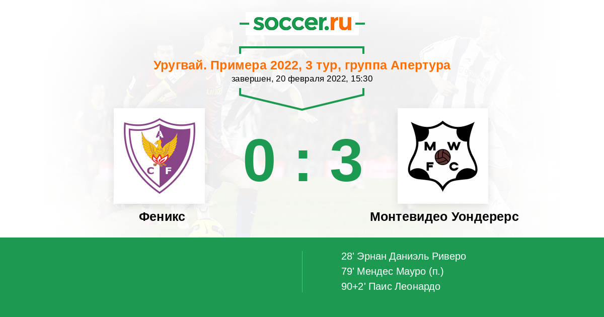 Уругвай. Примера A 20.07.2022 Феникс Логотип футбольный клуб Феникс (Монтевидео) 1:0 Логотип футбольный клуб Монтевидео Уондерерс Монтевидео Уондерерс