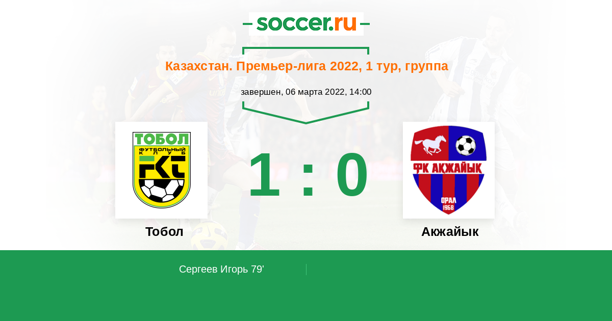 Казахстан. Премьер-лига 16.06.2012 Акжайык Логотип футбольный клуб Акжайык (Уральск) 2:1 Логотип футбольный клуб Тобол (Костанай) Тобол