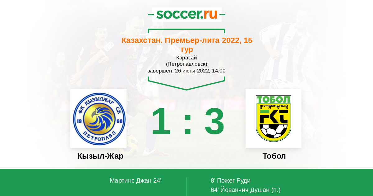 В матче встречающихся сегодня в казахстанской Премьер-лиге команд Кызыл-Жар и Тобол рискну предположить победу гостей потому, как у них более эффективная игра в атаке, но и хозяева огорчат вратаря кустанайцев.
