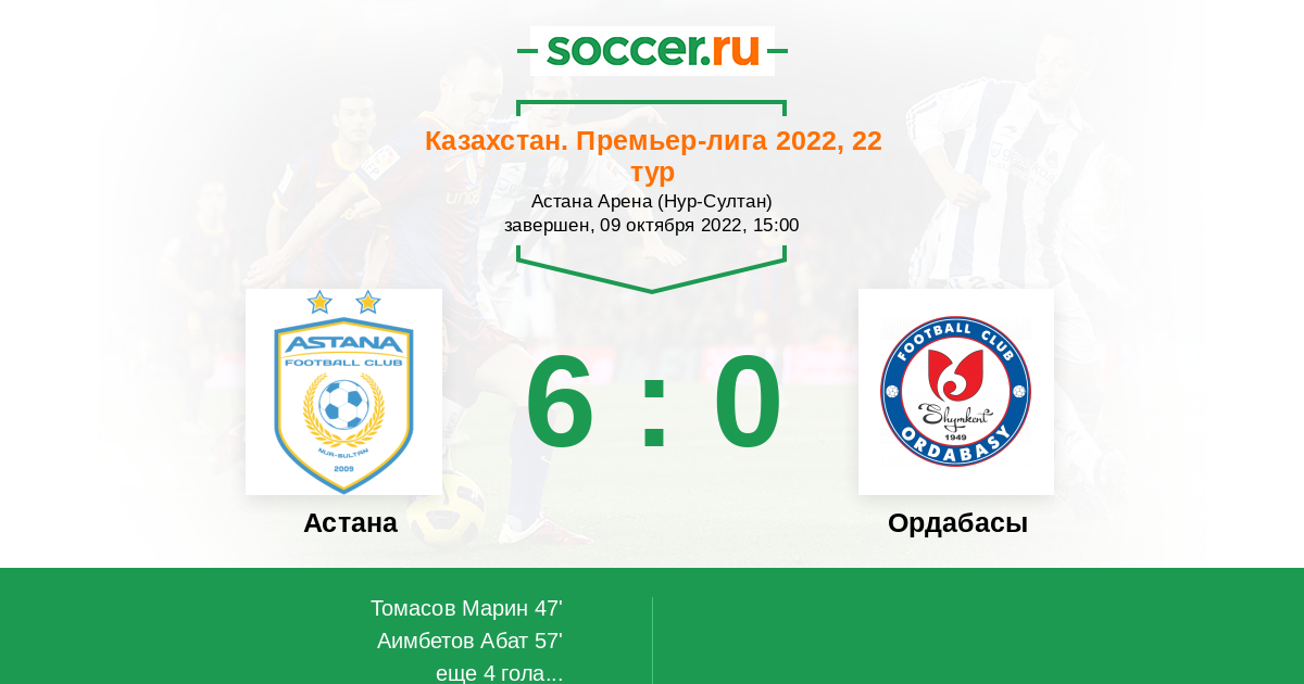 Казахстан. Премьер-лига 12.05.2010 Ордабасы Логотип футбольный клуб Ордабасы (Шымкент) 3:1 Логотип футбольный клуб Астана Астана