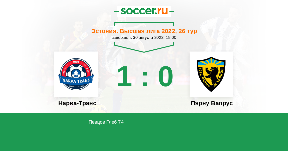 Эстония. Высшая лига 28.08.2021 Нарва-Транс Логотип футбольный клуб Нарва-Транс 3:0 Логотип футбольный клуб Пярну Вапрус Пярну Вапрус