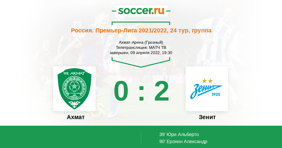Россия. Кубок 25.07.2023 Зенит Логотип футбольный клуб Зенит (Санкт-Петербург) 2:0 Логотип футбольный клуб Ахмат (Грозный) Ахмат