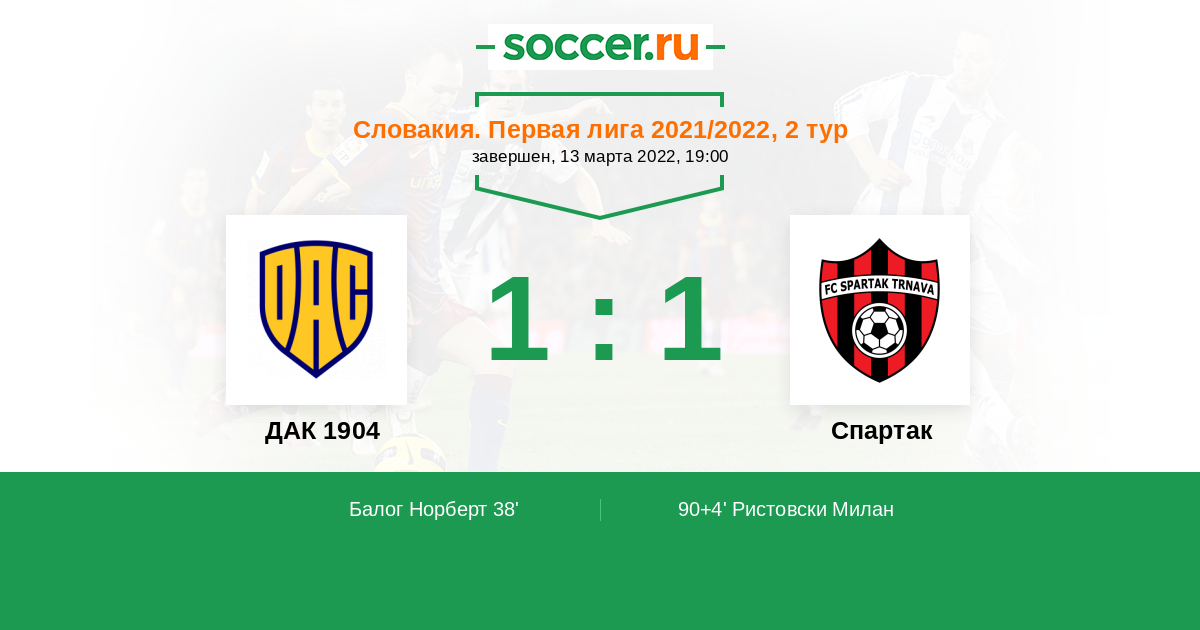 Словакия. Суперлига 13.02.2022 Спартак Логотип футбольный клуб Спартак (Трнава) 1:1 Логотип футбольный клуб ДАК 1904 (Дунайська Стреда) ДАК 1904