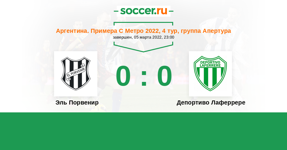 Аргентина. Примера С Метро 18.02.2020 Депортиво Лаферрере Логотип футбольный клуб Депортиво Лаферрере 2:1 Логотип футбольный клуб Эль Порвенир (Буэнос-Айрес) Эль Порвенир