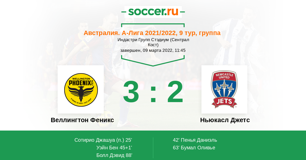 Австралия. А-Лига 18.03.2022 Ньюкасл Джетс Логотип футбольный клуб Ньюкасл Джетс 4:0 Логотип футбольный клуб Веллингтон Феникс Веллингтон Феникс