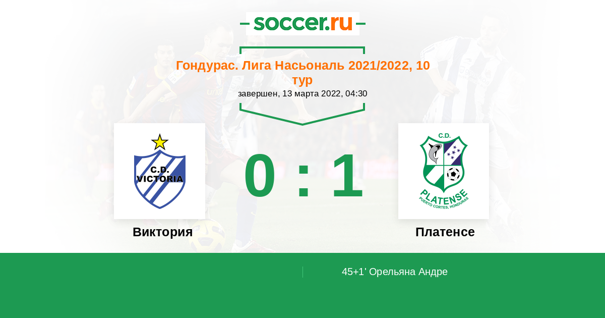 Гондурас. Лига Насьональ 18.02.2010 Платенсе Логотип футбольный клуб Платенсе (Пуэрто Кортес) 2:0 Логотип футбольный клуб Виктория (Ла-Сейба) Виктория