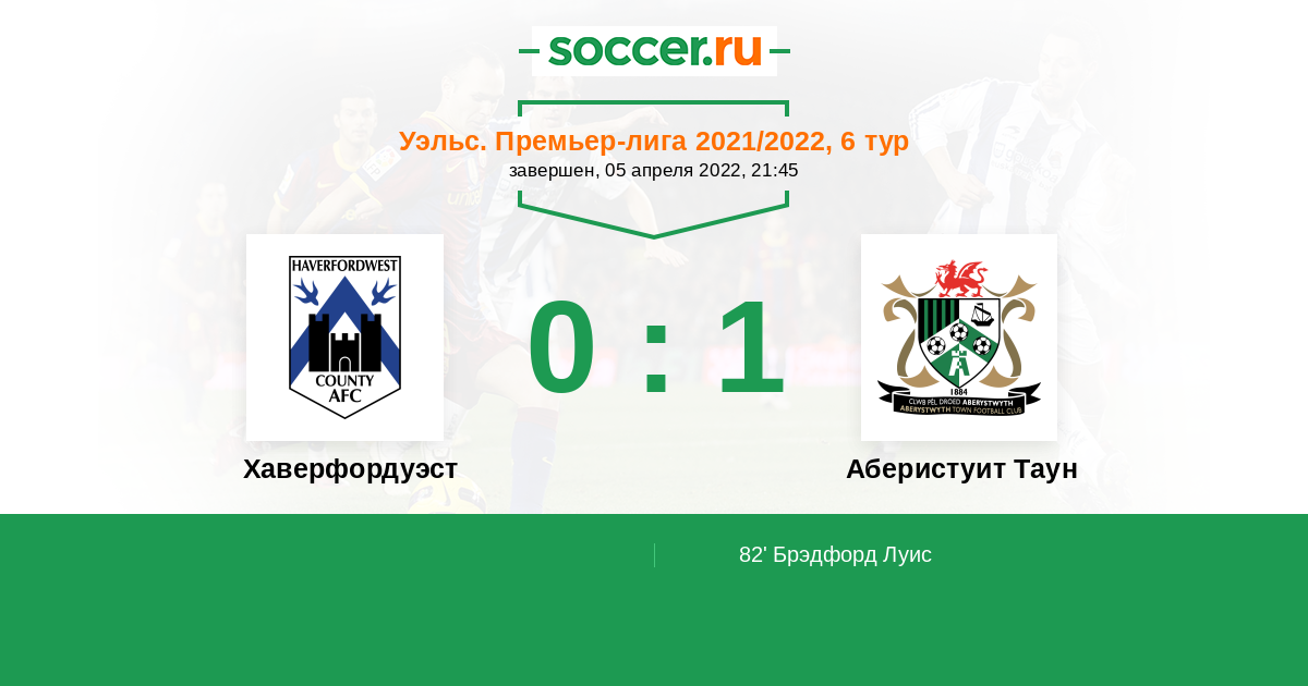 Уэльс. Премьер-Лига 15.03.2022 Аберистуит Таун Логотип футбольный клуб Аберистуит Таун 0:6 Логотип футбольный клуб Хаверфордуэст Хаверфордуэст