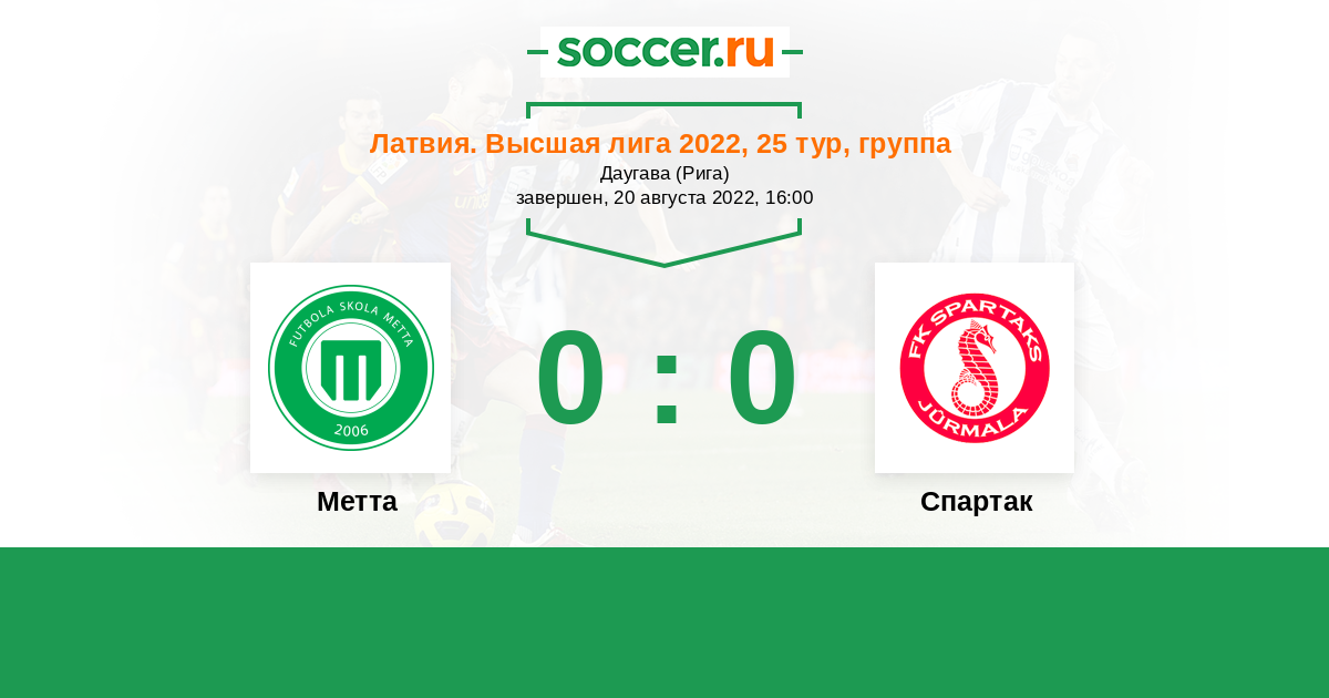 Латвия. Высшая лига 26.07.2020 Спартак Логотип футбольный клуб Спартак (Юрмала) 2:0 Логотип футбольный клуб Метта (Рига) Метта