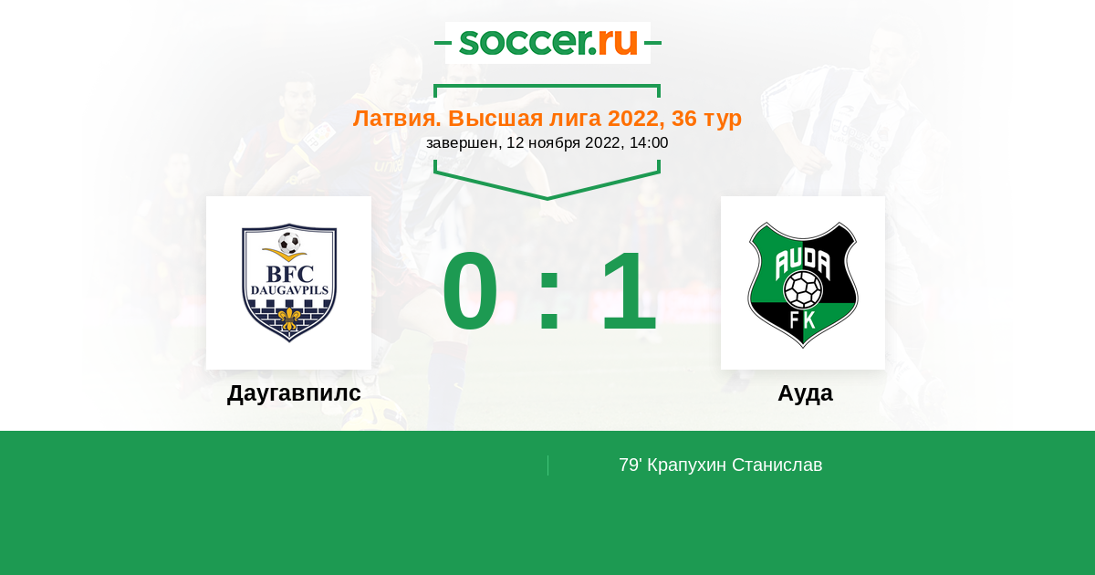 Латвия. Высшая лига 05.09.2022 Ауда Логотип Ауда (Кекава) 2:0 Логотип Даугавпилс Даугавпилс