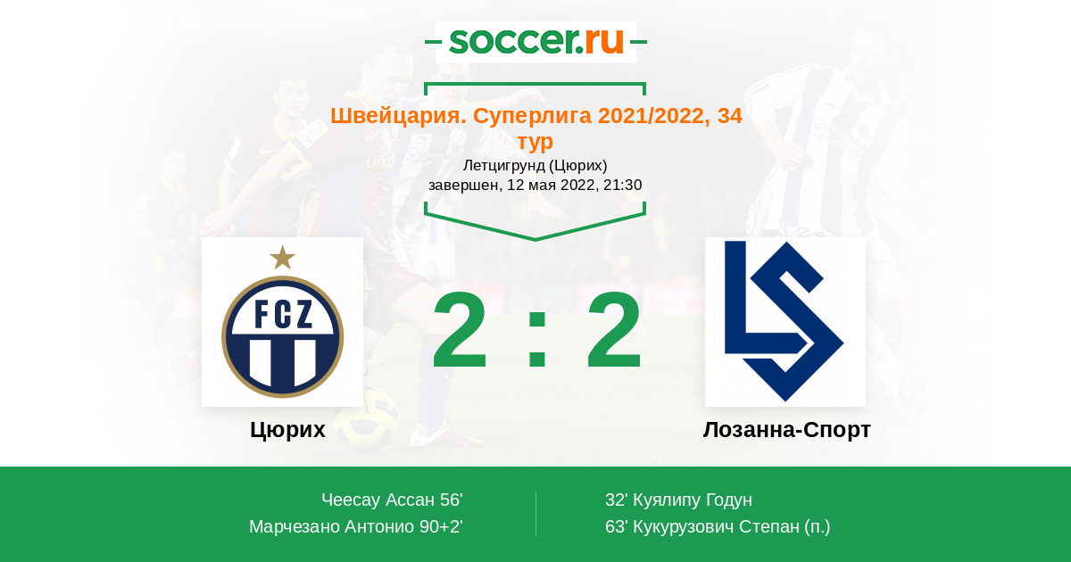 Швейцария. Суперлига 09.05.2021 Лозанна-Спорт Логотип футбольный клуб Лозанна-Спорт 2:2 Логотип футбольный клуб Цюрих Цюрих