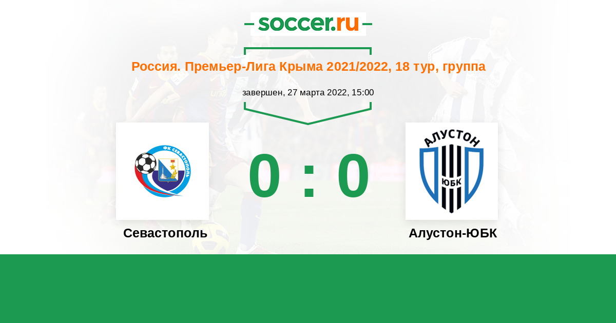 Россия. Премьер-Лига Крыма 27.03.2022 Севастополь Логотип футбольный клуб Севастополь 0:0 Логотип футбольный клуб Алустон-ЮБК (Алушта) Алустон-ЮБК