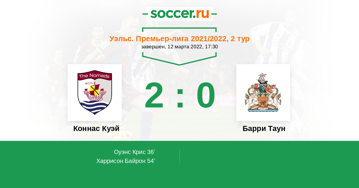 Уэльс. Премьер-Лига 11.09.2021 Барри Таун Логотип футбольный клуб Барри Таун 1:0 Логотип футбольный клуб Коннас Куэй Коннас Куэй