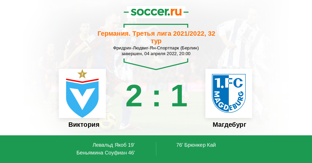 Германия. Третья лига 23.10.2021 Магдебург Логотип футбольный клуб Магдебург 1:0 Логотип футбольный клуб Виктория (Берлин) Виктория