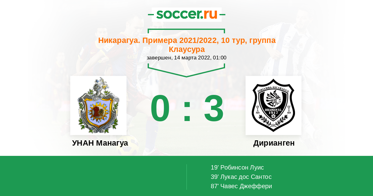 Никарагуа. Примера 02.10.2021 УНАН Манагуа Логотип футбольный клуб УНАН Манагуа 0:5 Логотип футбольный клуб Дирианген (Дириамба) Дирианген