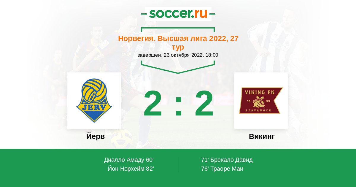 Норвегия. Высшая лига 16.05.2022 Викинг Логотип футбольный клуб Викинг (Ставангер) 3:0 Логотип футбольный клуб Йерв (Гримстад) Йерв