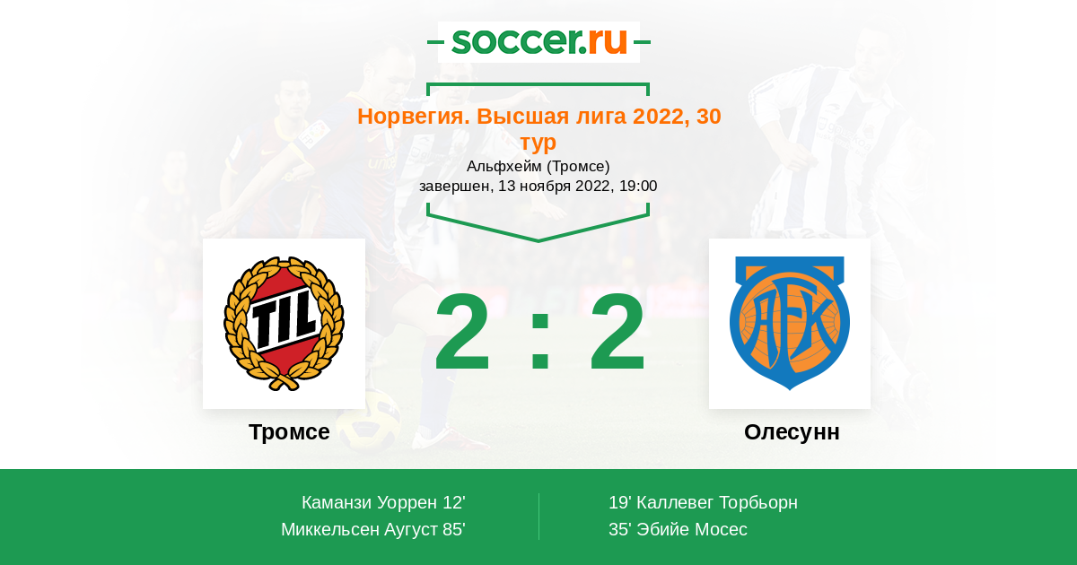 Норвегия. Высшая лига 18.04.2022 Олесунн Логотип футбольный клуб Олесунн 2:2 Логотип футбольный клуб Тромсе Тромсе