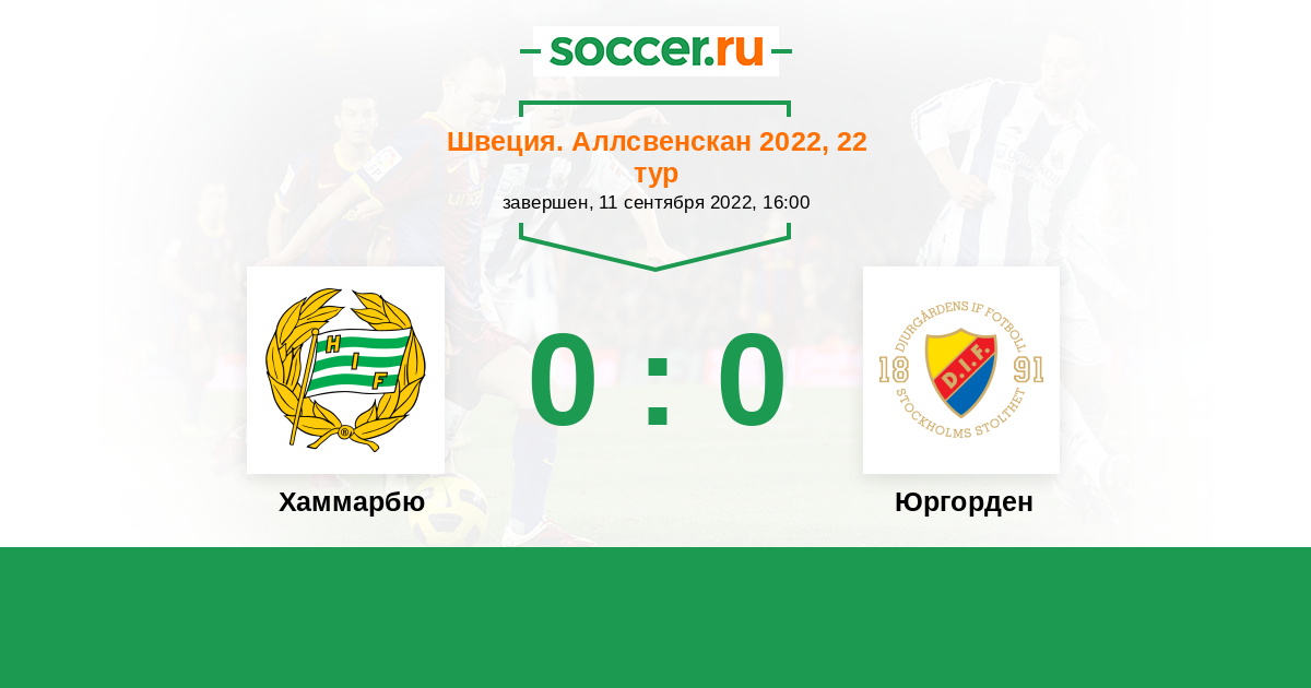 Швеция. Аллсвенскан 03.07.2022 Юргорден Логотип футбольный клуб Юргорден (Стокгольм) 1:0 Логотип футбольный клуб Хаммарбю (Стокгольм) Хаммарбю