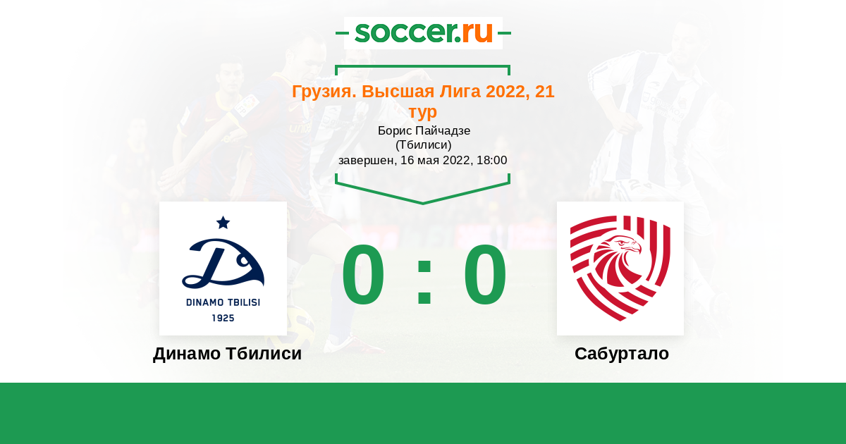 Грузия. Высшая лига 17.06.2018 Сабуртало Логотип футбольный клуб Сабуртало (Тбилиси) 1:0 Логотип футбольный клуб Динамо Тбилиси Динамо Тбилиси
