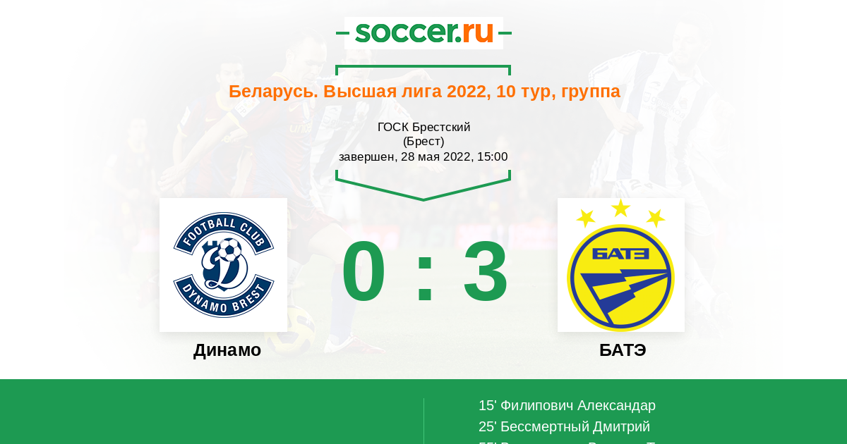 Беларусь. Высшая лига 28.06.2015 БАТЭ Логотип футбольный клуб БАТЭ (Борисов) 1:0 Логотип футбольный клуб Динамо (Брест) Динамо