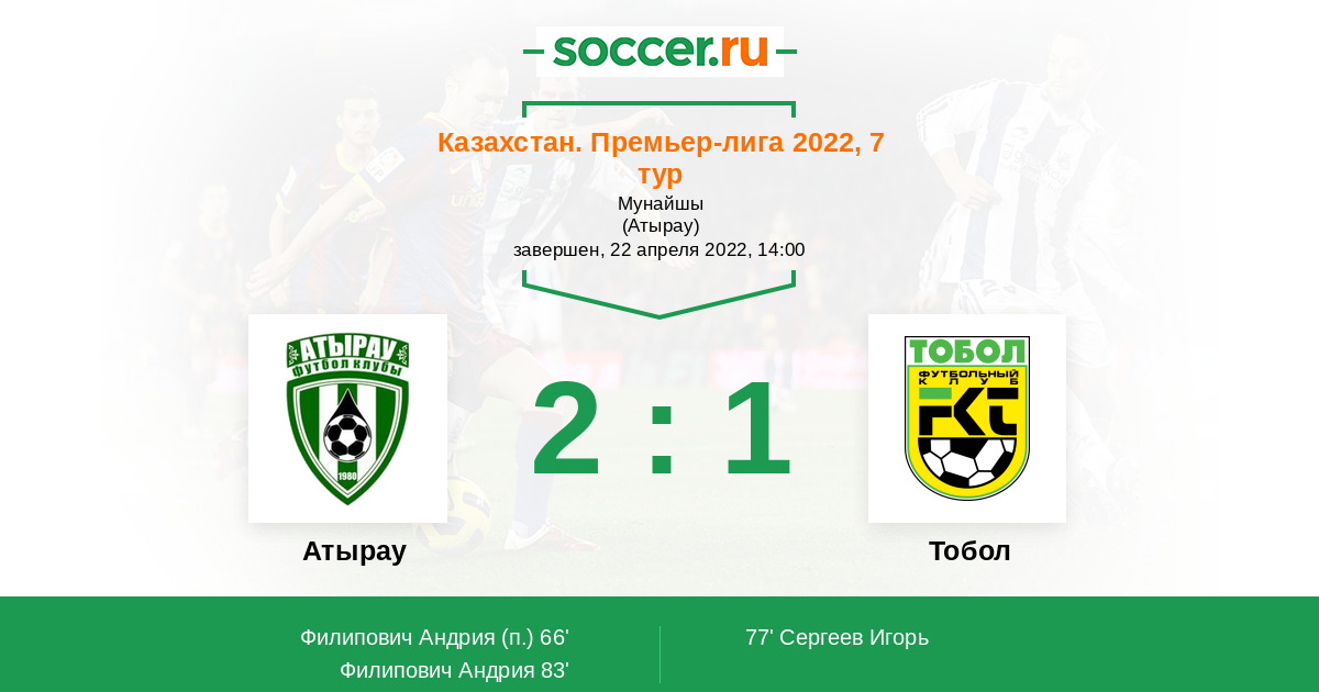 Казахстан. Премьер-лига 02.07.2023 Тобол Логотип футбольный клуб Тобол (Костанай) 1:0 Логотип футбольный клуб Атырау Атырау