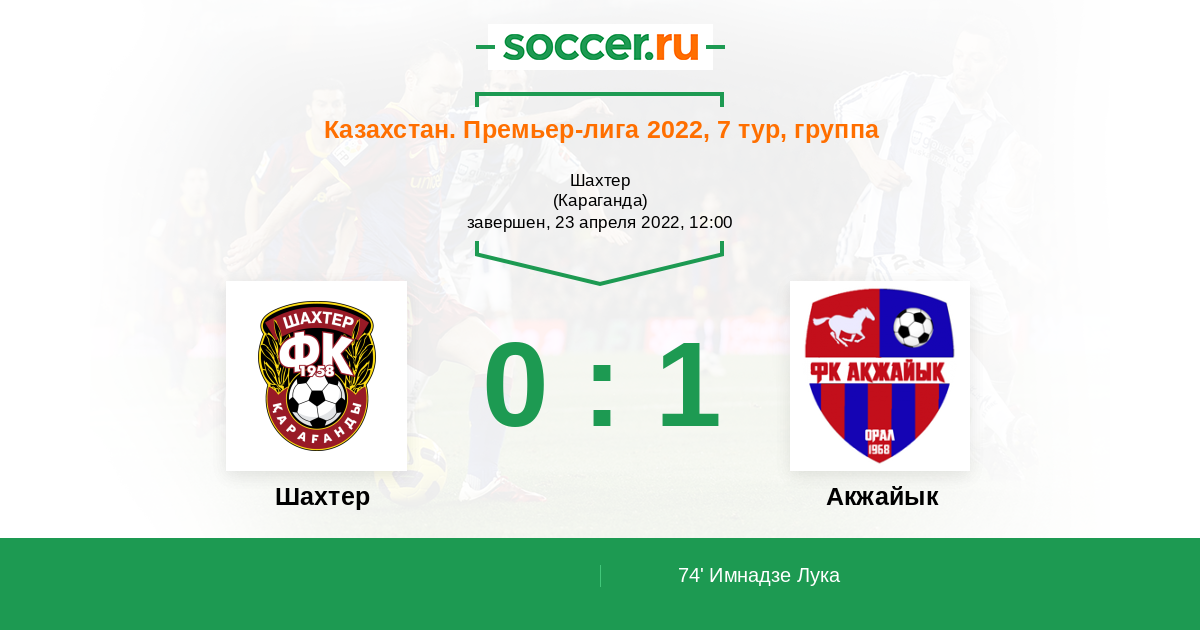 Казахстан. Премьер-лига 14.05.2017 Шахтер Логотип футбольный клуб Шахтер (Караганда) 1:0 Логотип футбольный клуб Акжайык (Уральск) Акжайык
