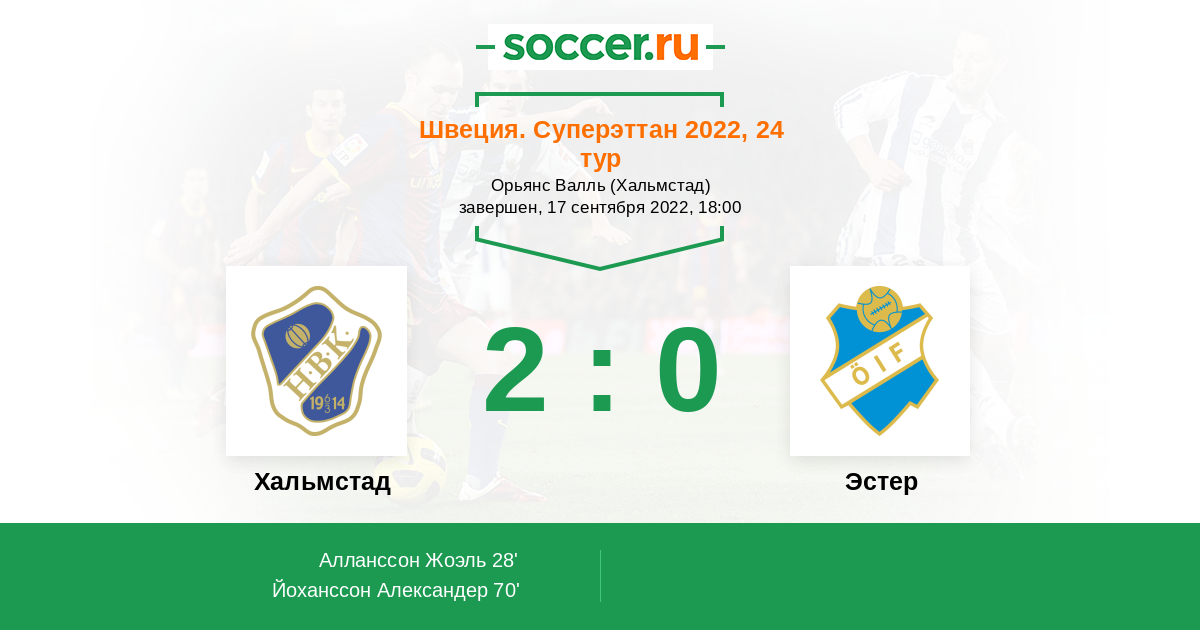 Швеция. Суперэттан 27.09.2012 Хальмстад Логотип футбольный клуб Хальмстад 3:2 Логотип футбольный клуб Эстер (Векше) Эстер